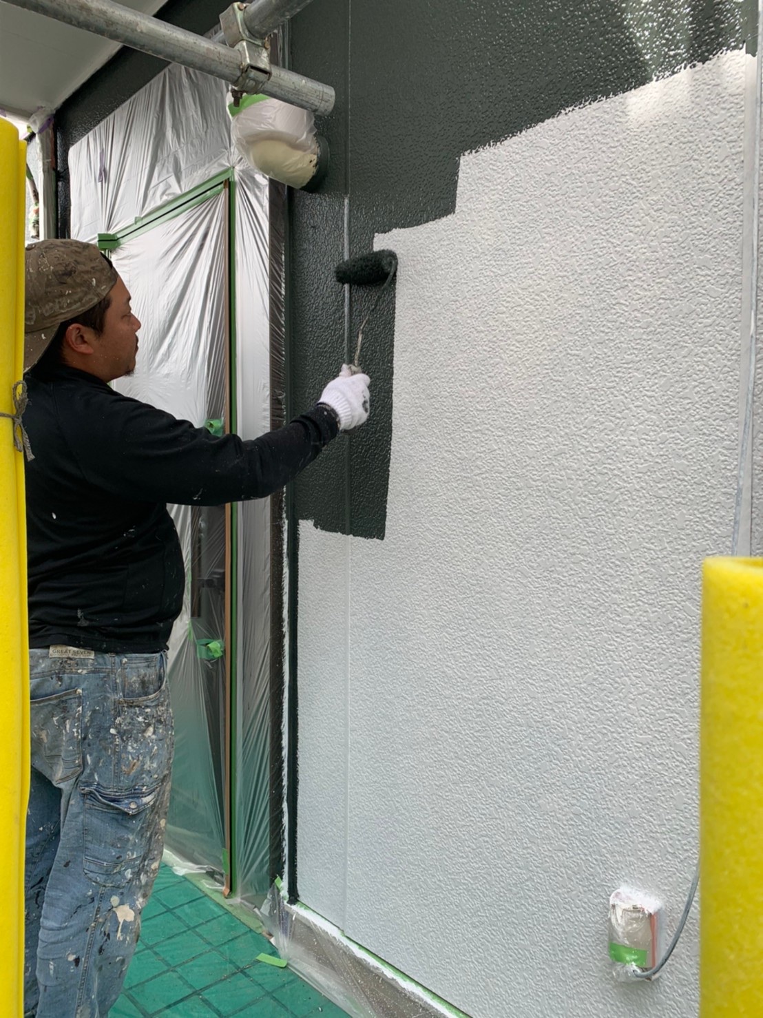 外壁塗装上塗り1回目@高槻市安岡寺町