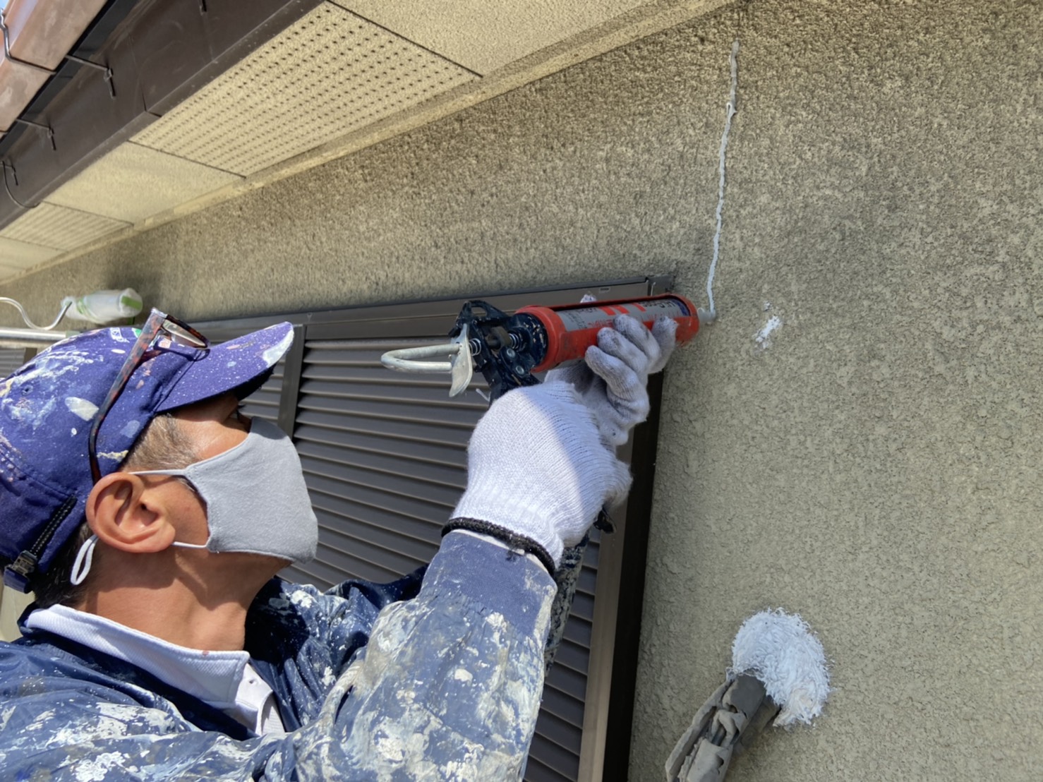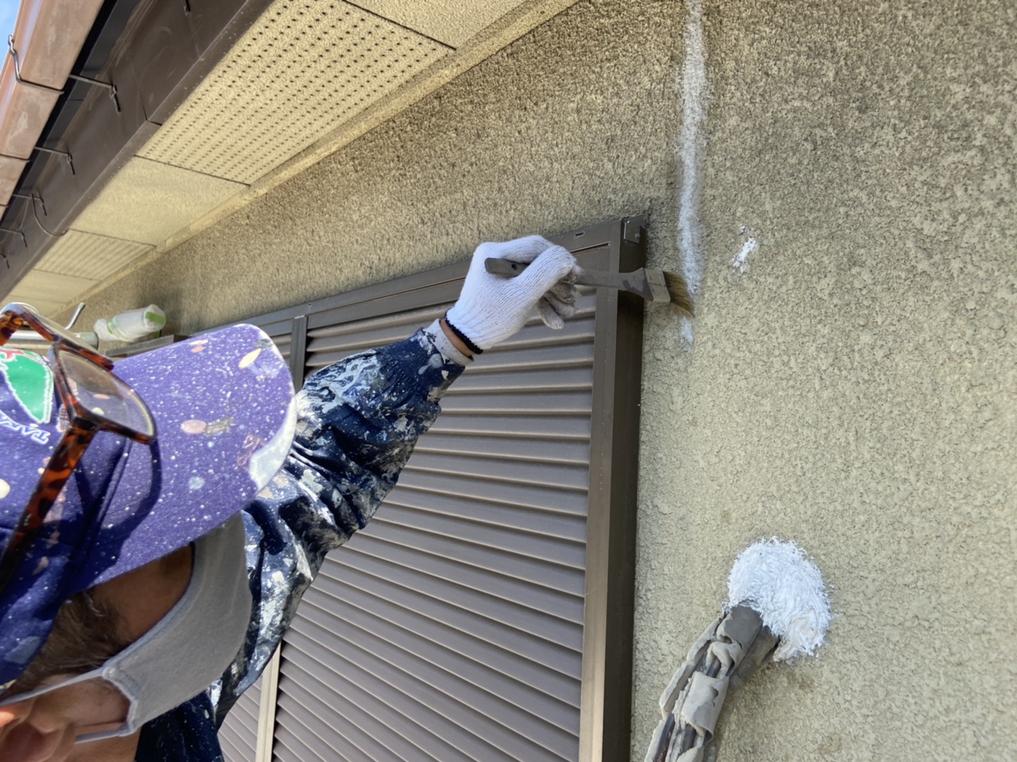 ノンブリードのコーキングでひび割れを埋めていきます‼︎^ ^