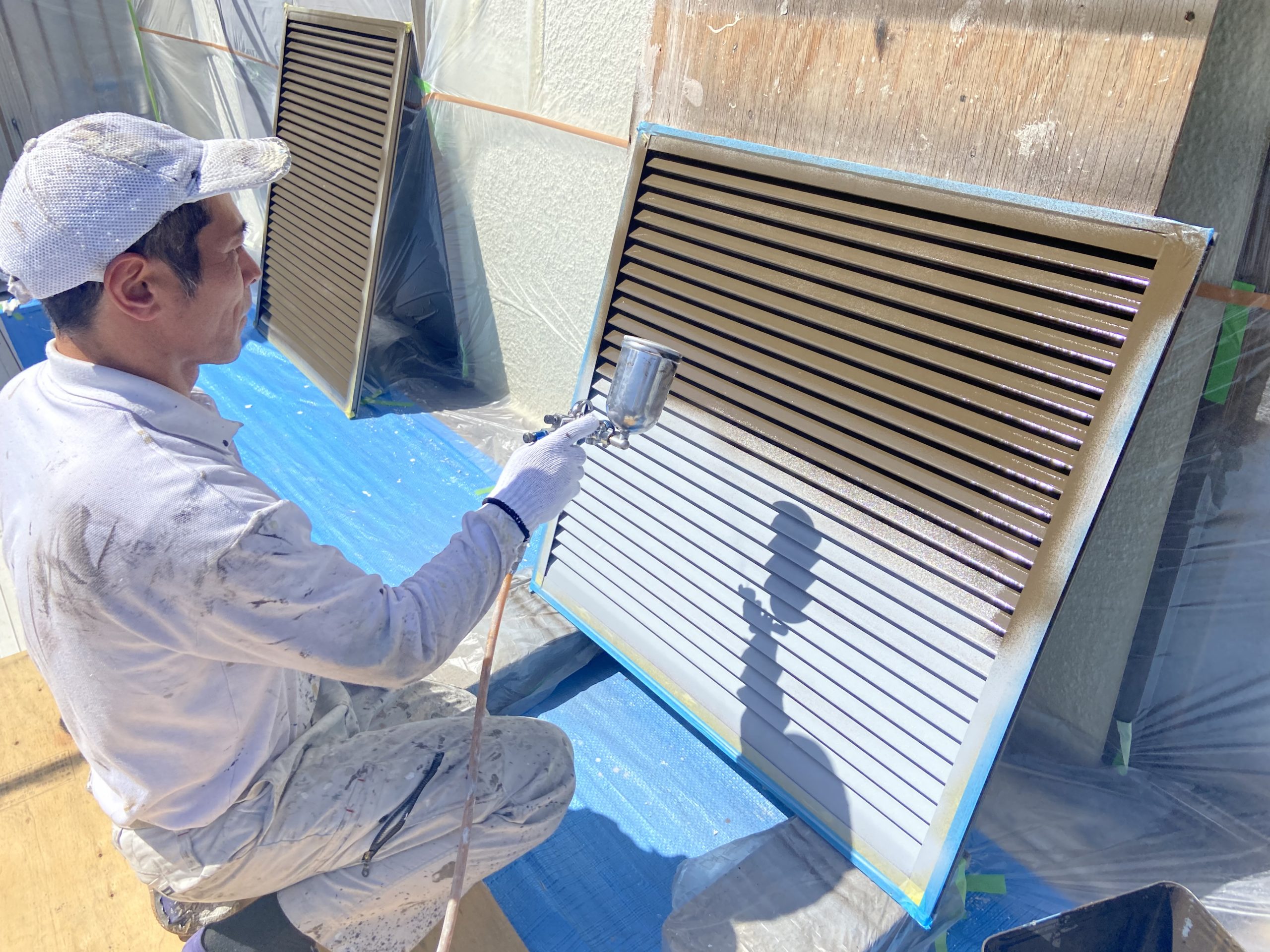 外壁、屋根は手塗りで仕上げますが、雨戸は吹付仕上げがオススメです♪