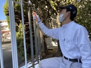 ガラガラと開けるタイプの門扉で、経年劣化でサビ付いたりするので綺麗に塗装し直します(^.^)