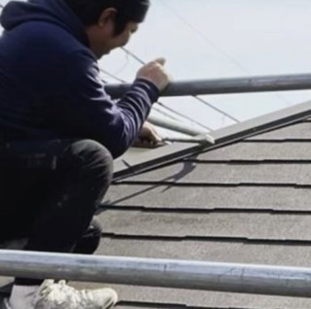 高圧洗浄後、乾ききったのを確認してから板金の浮きビスの打ち付け、専用ボンド固定、塗装で仕上げていきます(^.^)
