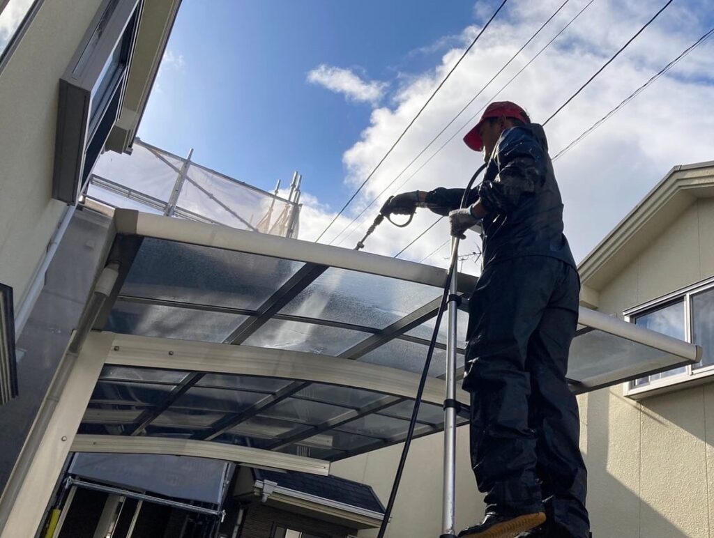 屋根、外壁はもちろんのこと、アクリルや敷地土間まで徹底的に洗い流していきます(^.^)