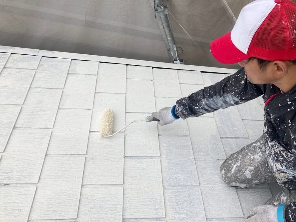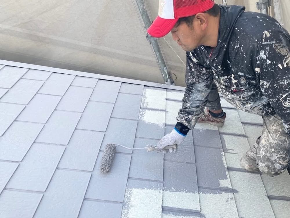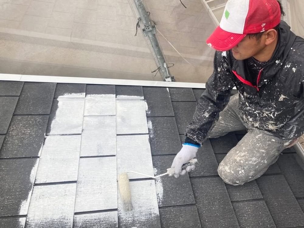 遮熱機能のある塗料を下塗り×2回、中塗り、上塗りで丁寧に仕上げていきます(^.^)