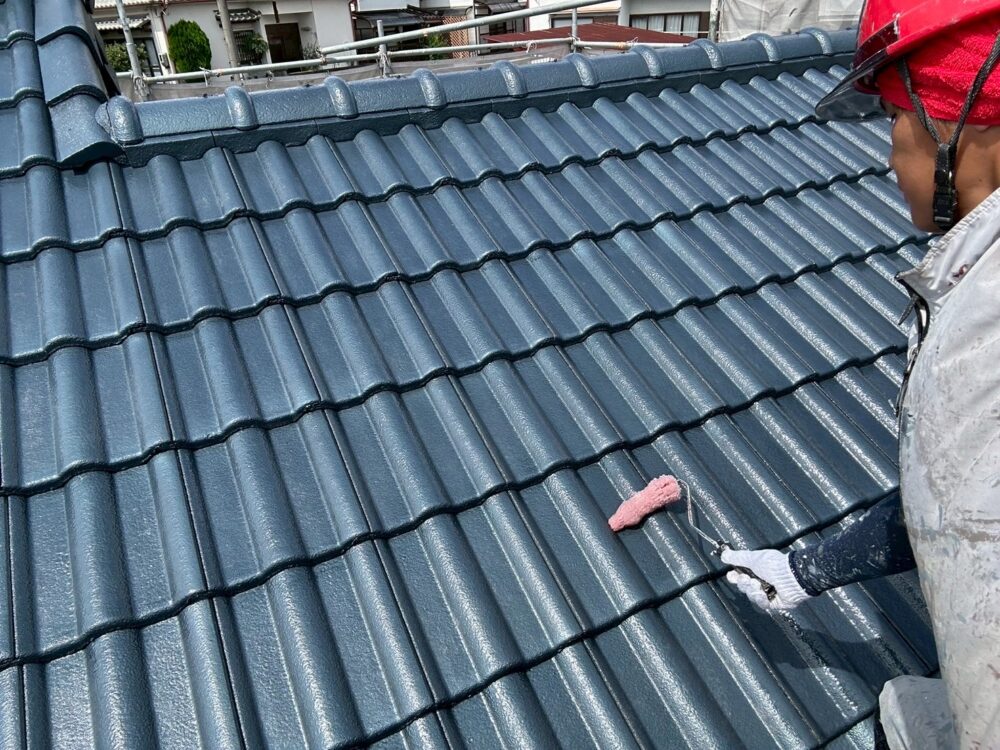 屋根塗装の中塗り、上塗り仕上げ@吹田市高浜